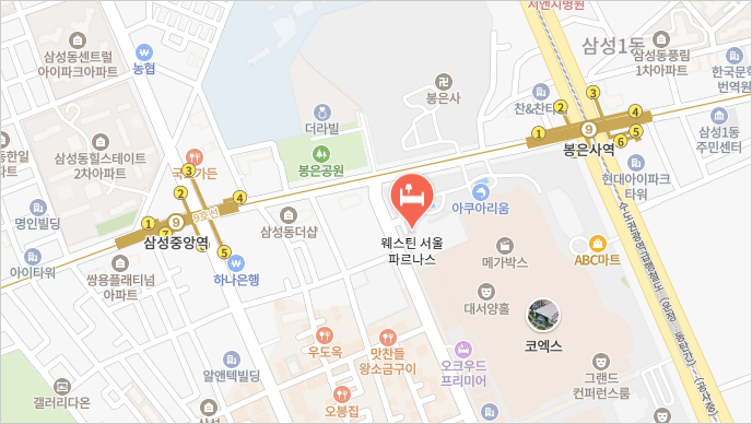 지하철 9호선 봉은사역 7번 출구에서 509m